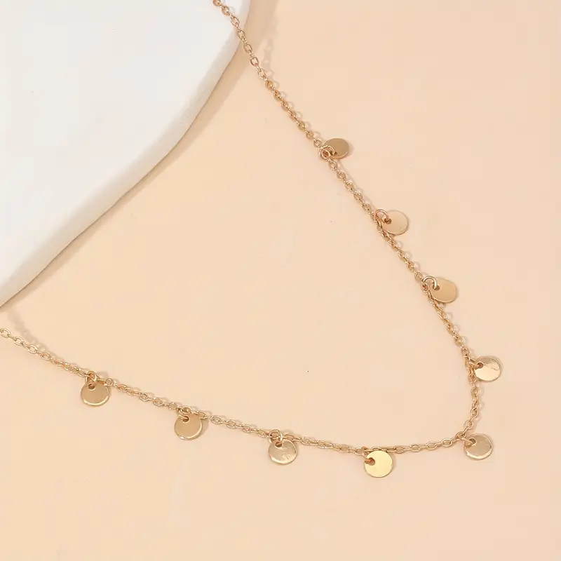 گردنبند زنانه دیسک طلایی شیک با طراحی درخشان دیسک، چوکر آهنی، مناسب استفاده روزانه و مناسبتهای خاص، ایدهای عالی برای هدیه روز ولنتاین و روز مادر، زیورآلات چندمنظوره و شیک.