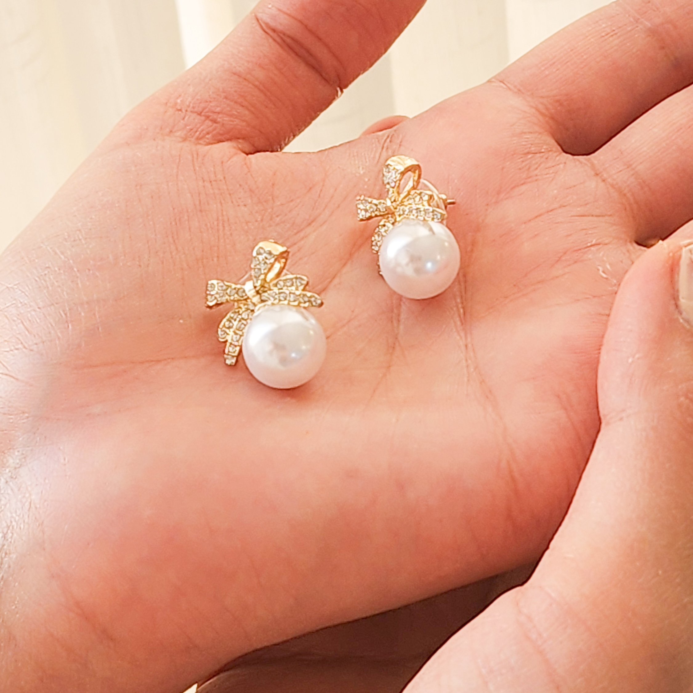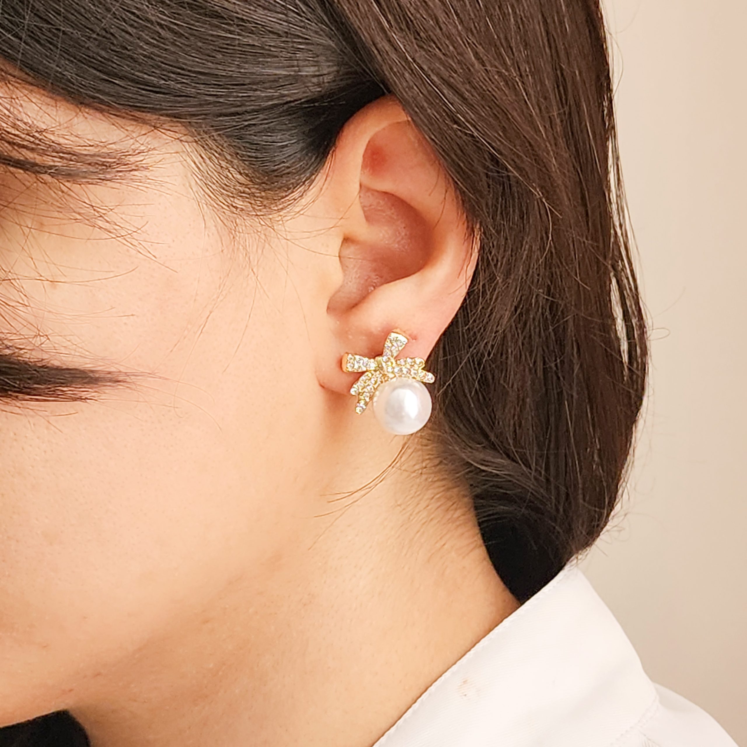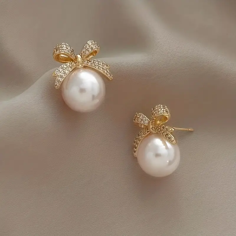 جفت گوشواره دو عددی سبک وینتیج و جذاب، ساخته شده از آلیاژ روی با مروارید مصنوعی و طرح پاپیون، مناسب برای استفاده روزانه و تعطیلات، سازگار با همه فصلها.